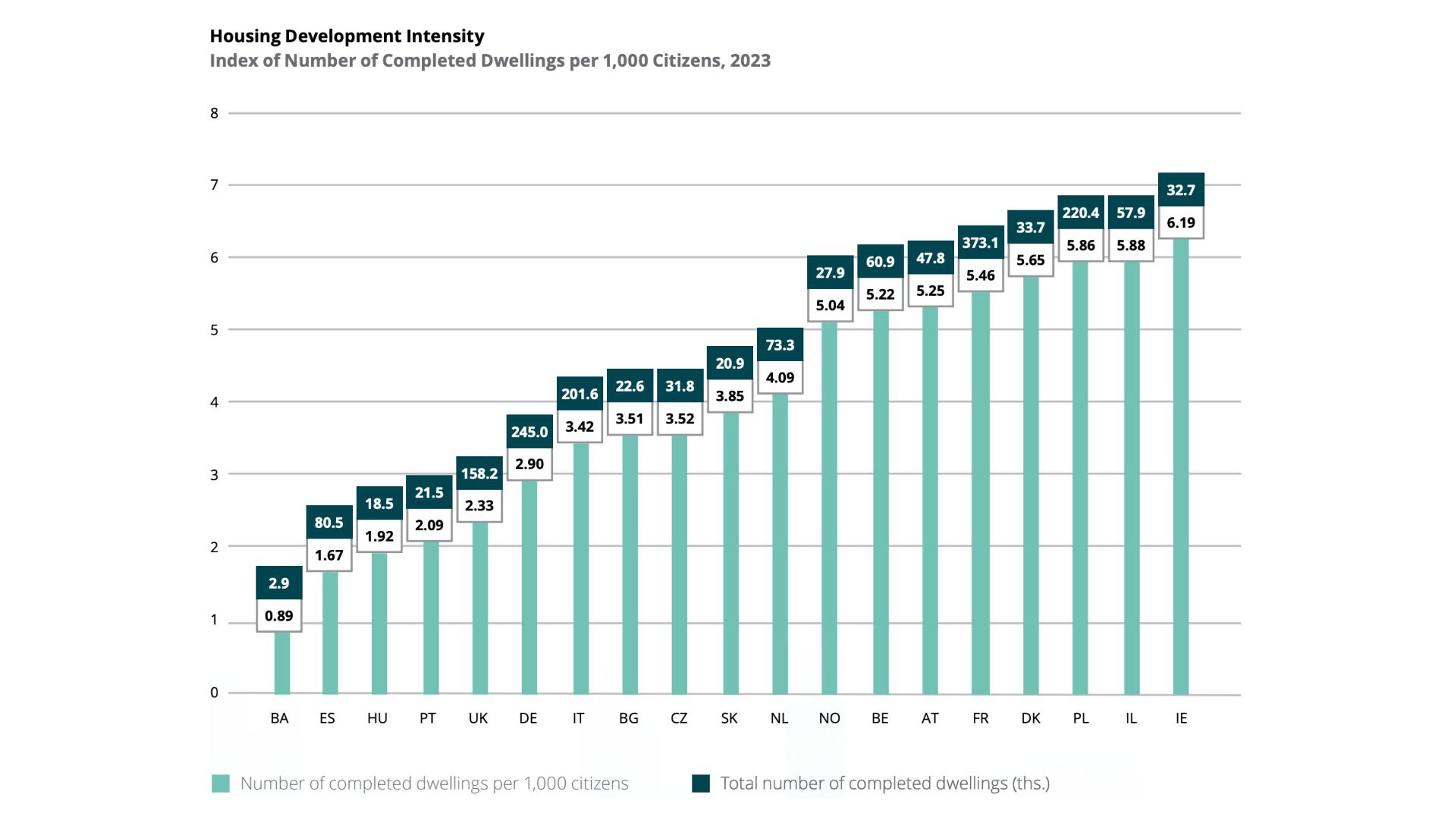According to the latest data from the Deloitte report, France, Germany, and Poland are at the forefront of countries with the highest number of newly built homes. In terms of the number of homes completed per 1000 inhabitants, Ireland is the leader in Europe, just ahead of Israel and Poland. These three countries are definitely leading in Europe in terms of the intensity of new housing construction.